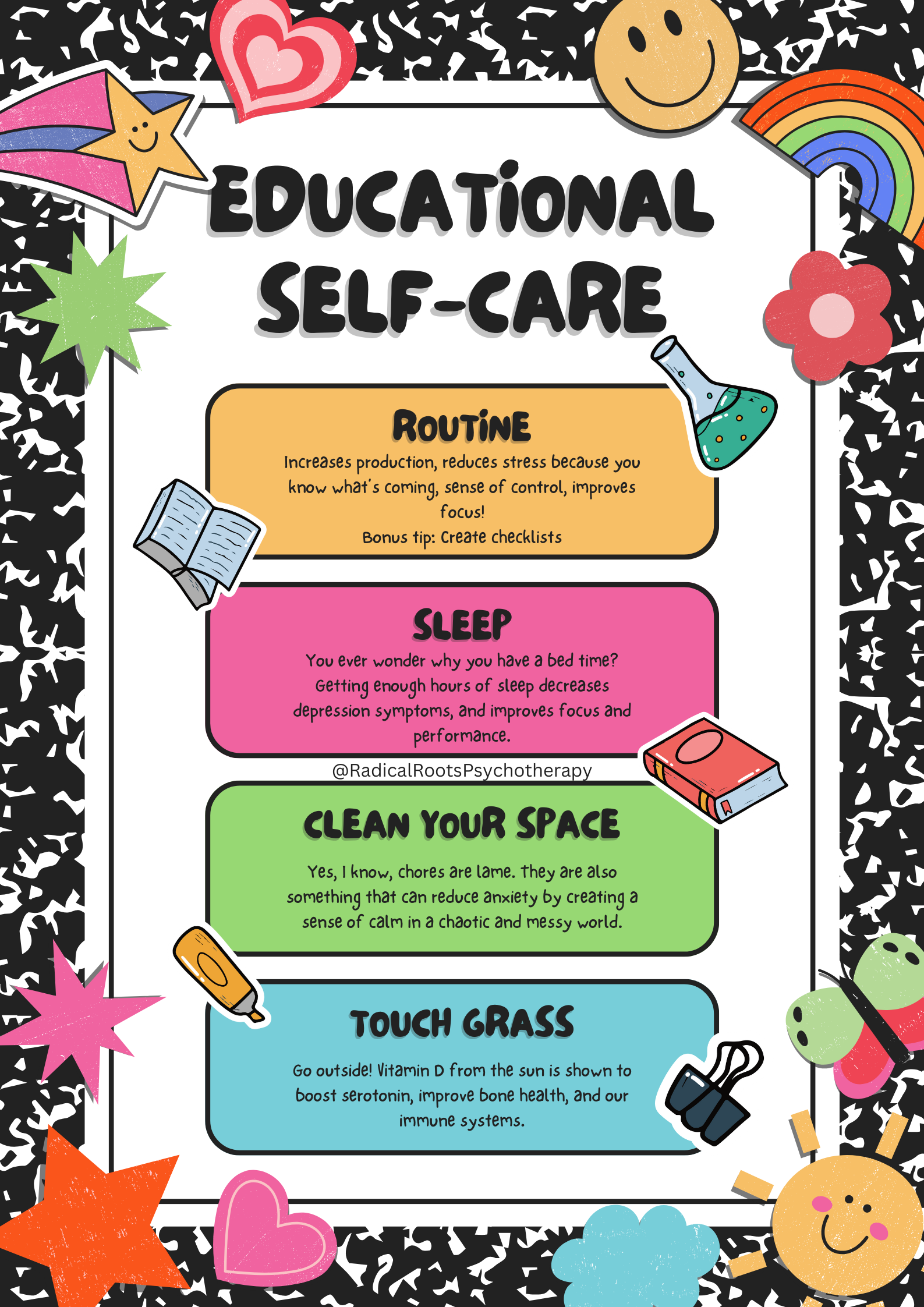 Time management! Try not to have to use the excuse “I didn’t have time”. I understand we are all busy, but think about the time you spent daydreaming, procrastinating, hitting the snooze button, or mindlessly scrolling on social media. That could have been time you are doing some self-care. Carve it out in your schedule if you have to!